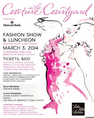 The South Florida Museum hosts an annual Fashion Show and Luncheon Benefit and this year Jax had the honour of having one of her illustrations selected for the Invitations and Tickets. The event took place in March 2014.