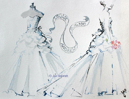 This was a commission for the Wedding Gown as worn by a client’s daughter at her wedding. It shows front and back detail and is a unique way to commemorate a very special day.