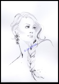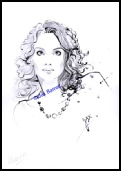 Veronica Morgan is a Fashion Designer and wanted a new logo for her company featuring Veronica herself. Jax was selected to produce this illustration. On this commission Jax highlighted Veronica’s belt and earrings with foil art